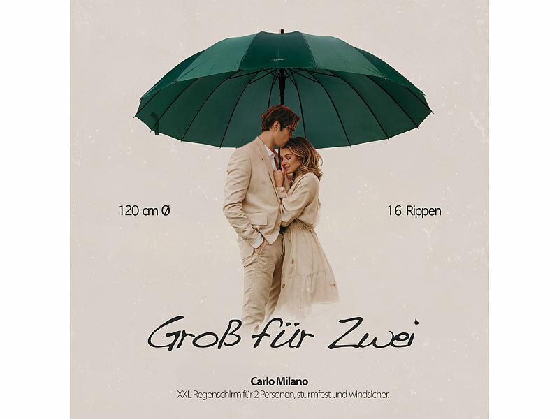 Carlo Milano Schirm: XXL-Regenschirm für 2 Personen, sturmfest und windsicher, 16 Rippen