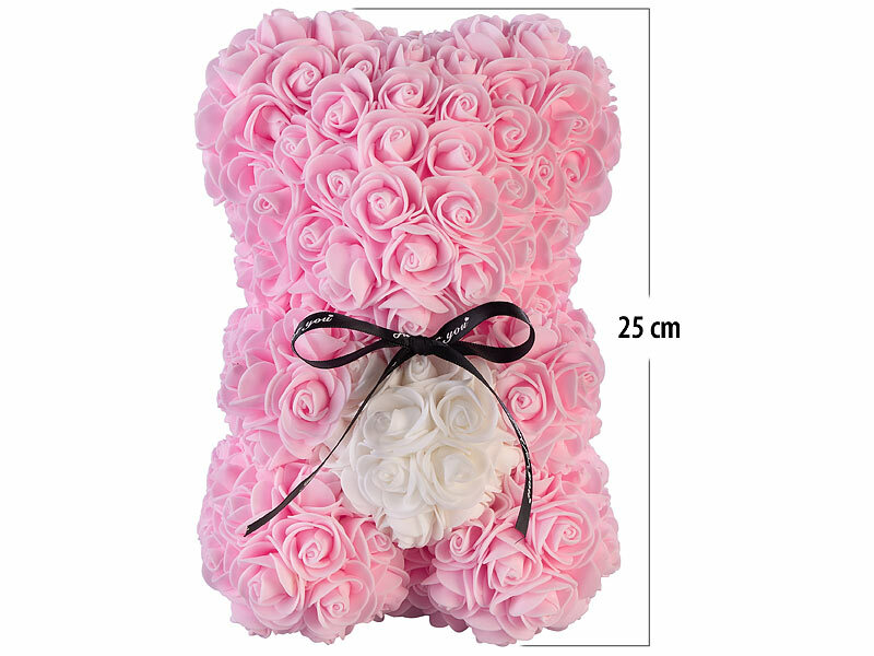 Ein Symbol der Liebe & Eleganz: Der Bär besteht aus sorgfältig arrangierten, künstlichen Rosen, die ihm eine elegante und romantische Optik verleihen. Mit seiner angenehmen Größe von 25 cm ist er ein stilvoller Hingucker, der jedem Raum eine edle Note verleiht. Geliefert wird der Rosenbär in einer edlen Geschenkbox, die ihn perfekt in Szene setzt. So ist er sofort bereit zum Verschenken - ohne zusätzliche Verpackung.