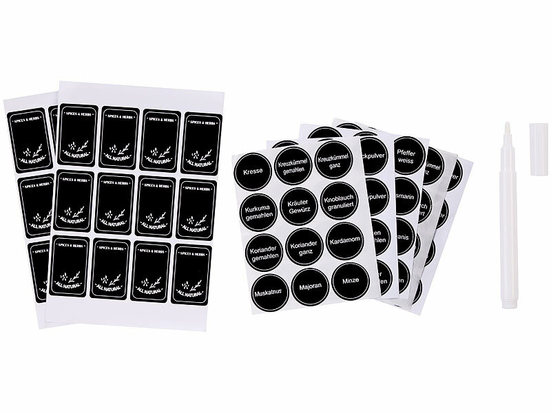 Rosenstein & Söhne 24er-Set Gewürzgläser mit Bambusdeckel, je 120 ml, 240 Etiketten