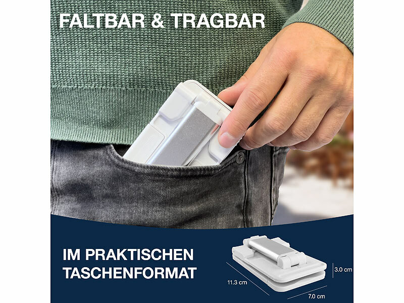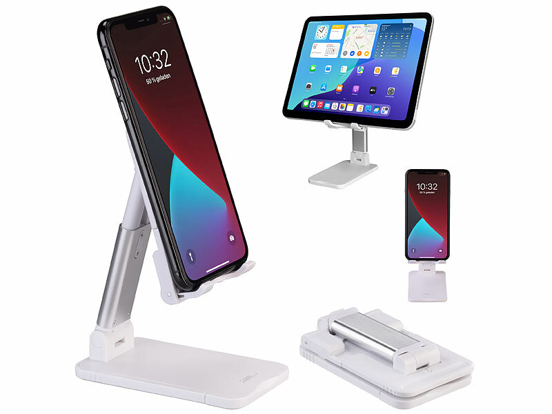 PEARL Faltbarer Tablet- und Smartphone-Ständer, 2 Achsenhöhen