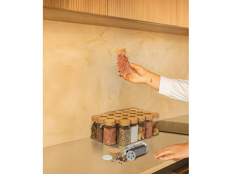 Kein Küchenchaos mehr: 48 Gewürzgläser mit Bambusdeckel