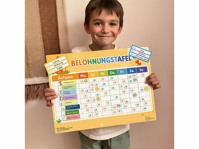 Motiviert Ihr Kind zur Mithilfe im Haushalt: Mit dieser liebevoll gestalteten Belohnungstafel schaffen Sie einen spielerischen Weg, Ihr Kind aktiv in den Familienalltag einzubeziehen. Die klare Wochenstruktur erleichtert es, gemeinsam Ziele zu setzen, Fortschritte sichtbar zu machen und auf vereinbarte Belohnungen hinzuarbeiten. So entwickelt Ihr Kind nicht nur Verantwortungsbewusstsein, sondern erlebt den Stolz, wenn es seine Aufgaben erfolgreich meistert.