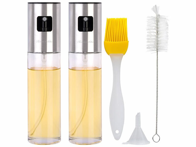 2 Essig- und Öl-Sprüher inklusive Pinsel, Reinigungsbürste und Trichter - Ölsprüher für Kochen - Außerdem relevant oder passend zu: Pumpe, Gewürz, Backofen