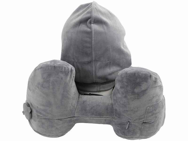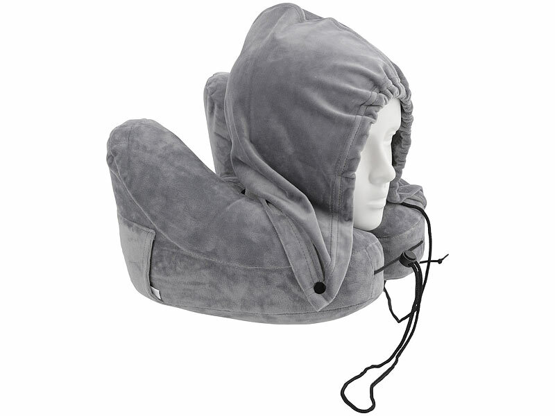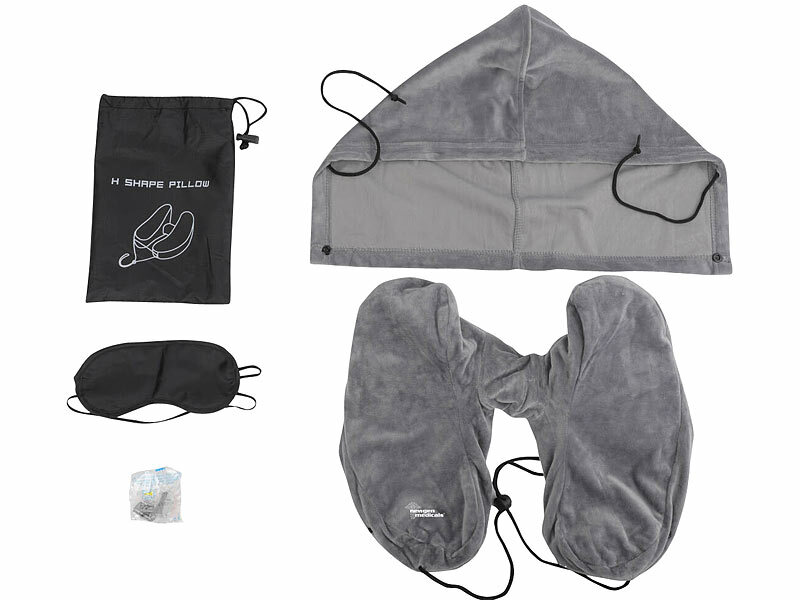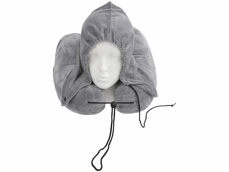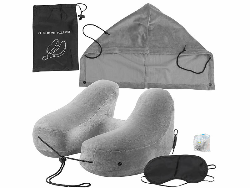 Nackenkissen inklusive Augenmaske, Tragetasche, Kapuze, 1 Paar Ohrstöpsel und deutscher Bedienungsanleitung - Autos Kissen Nacken - Außerdem relevant oder passend zu: Stöpsel, Handgepäck, aufblasbar, Gehörschutz