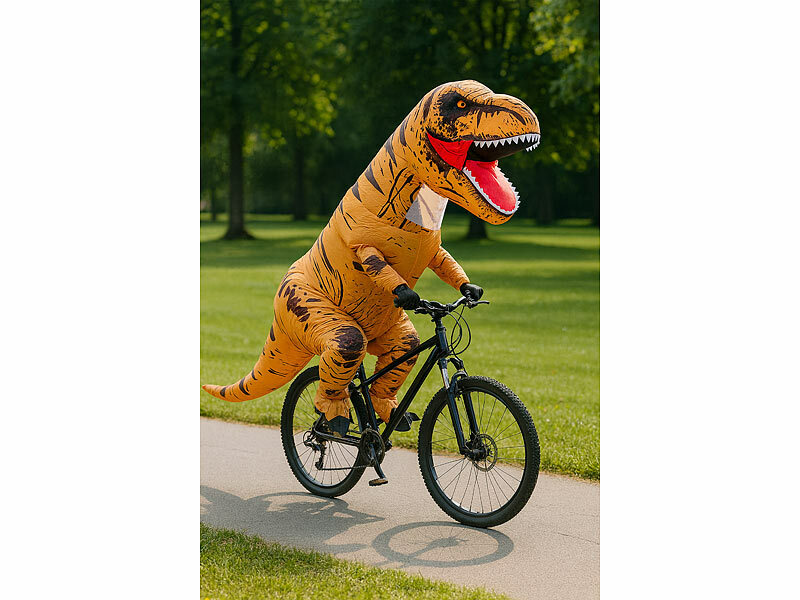 Der Dino ist los: Mit diesem aufblasbaren T-Rex-Kostüm werden Sie zum Highlight jeder Party. Sobald Sie hineinschlüpfen und das Gebläse aktiviert ist, füllt sich das Kostüm in Sekunden und verwandelt Sie in einen witzigen Urzeit-Giganten. Ob bei Karnevalsumzügen, Mottofeiern oder Geburtstags-Events, dieses Outfit zieht garantiert alle Blicke auf sich.