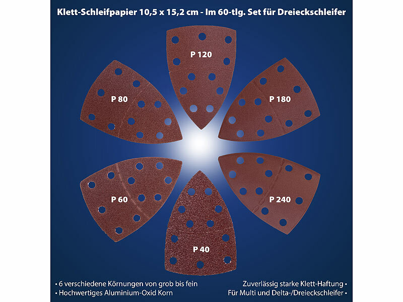 Perfekte Schleifkraft für jede Aufgabe: Mit diesem umfangreichen Set aus 60 Klett-Schleifblättern sind Sie bestens für jedes Projekt gerüstet. Ob grobes Abschleifen von Holz, Entfernen alter Farbreste oder feiner Zwischenschliff - mit Körnungen von 40 bis 240 haben Sie für jeden Schritt das passende Blatt parat. Die Delta-Form passt optimal auf viele gängige Dreieckschleifer - ideal für Ecken, Kanten und schwer erreichbare Stellen.