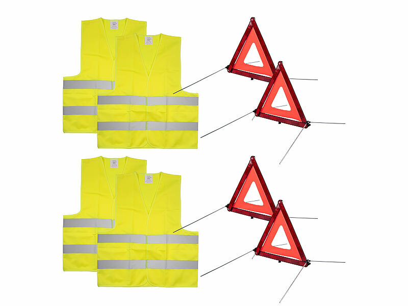 Lescars Kfz-Pannensets: 4er-Set Kfz-Notfallset mit Warnweste und Warndreieck, reflektierend