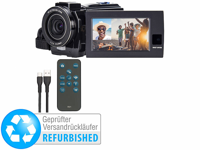 Camcorder DV-960.dual inklusive Akku, Fernbedienung mit Knopfzelle, USB-Lade- und Datenkabel (USB-A auf USB-C), Tasche und deutscher Anleitung