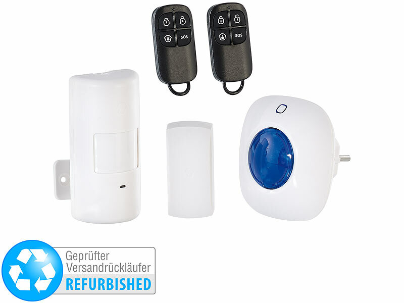 - Alarmsystem inklusive Sirene, Bewegungssensor, Türsensor, Montagematerial und dt. Anleitung