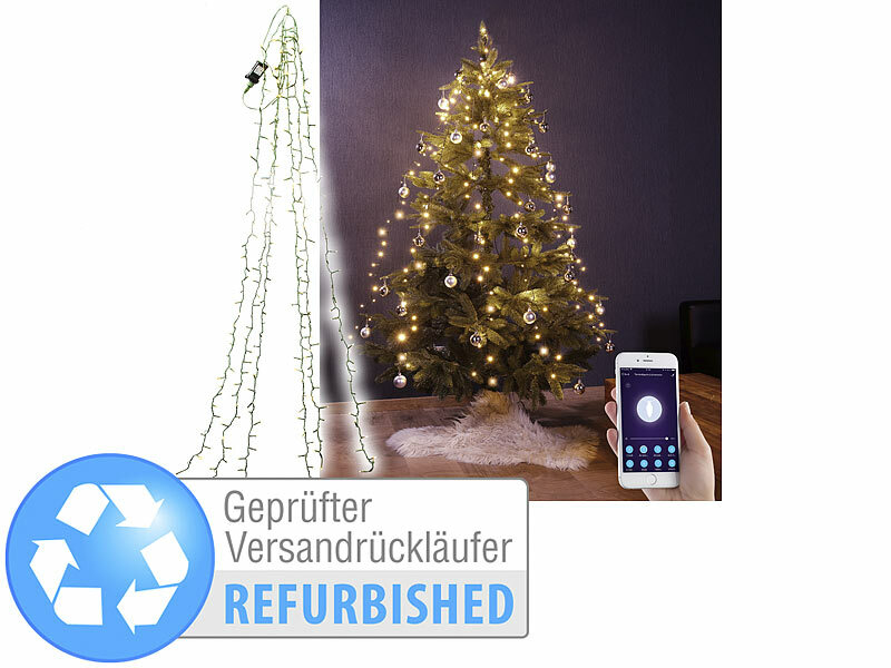 Lunartec Lichterketten als Dekos: WLAN-Tannenbaum-Überwurf-Lichterkette mit App, Versandrückläufer