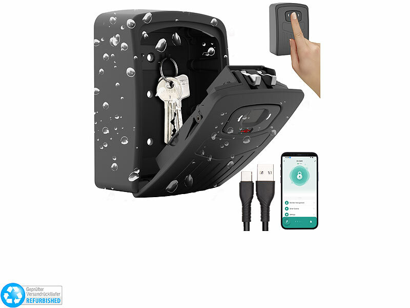 Schlüssel-Safe SAF-200.app inklusive USB-Kabel (USB-A auf USB-C), Bohrschablone, Montagematerial und deutscher Anleitung - Fingerprint-Safe - Außerdem relevant oder passend zu: Wandhalterung