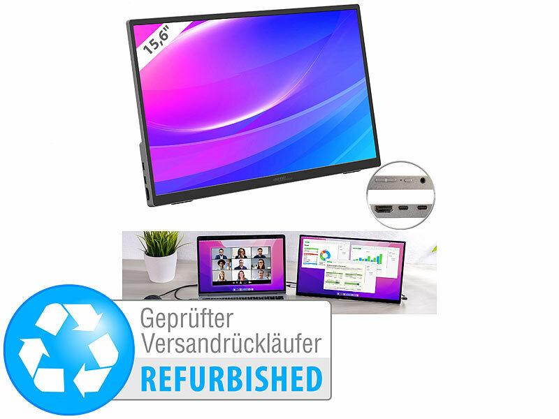 auvisio slim Monitor: Mobiler 15,6"/39,6 cm IPS-Superslim-Monitor, Full HD,Versandrückläufer