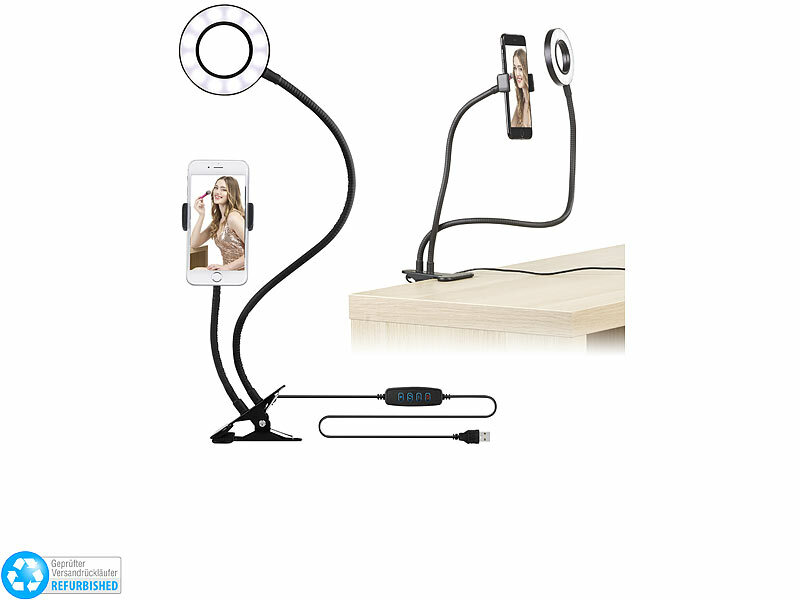 Ringlicht inklusive Smartphone-Halterung, Tisch-Klemmbefestigung und deutscher Anleitung