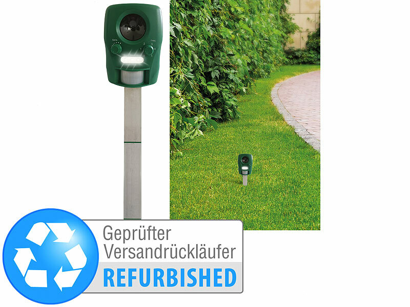 | Produktgruppe: Ultraschall-Tierschrecke mit Bewegungsmelder von € 14,40 bis € 41,99 | Produktgruppe: Ultraschall-Tierschrecks mit Bewegungsmelder mit Blinklicht von € 11,50 bis € 31,99 |