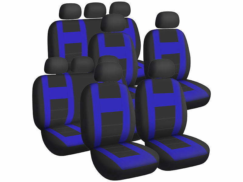 2x Sitzbezüge vorne: 118 x 55 cm, 1x Sitzbezug hinten: 132 x 59 cm, 1x Sitzbezug Rücksitzbank: 132 x 80 cm, 5x Kopfstützen-Bezüge: 30 x 27 cm