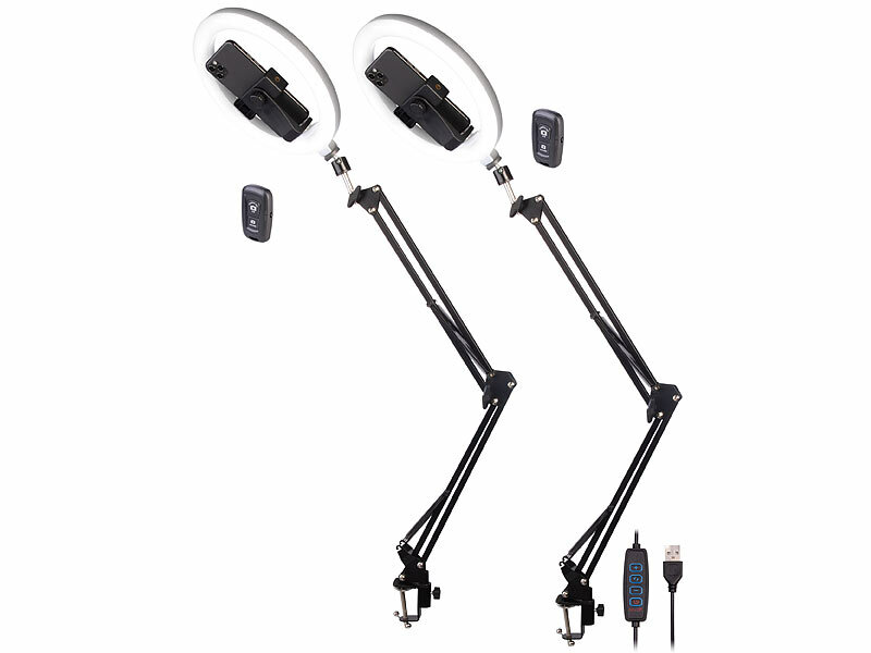 Somikon 4er-Set Dokumentenscanner- & Overhead-Stative, 10"-Ringlicht, Auslöser