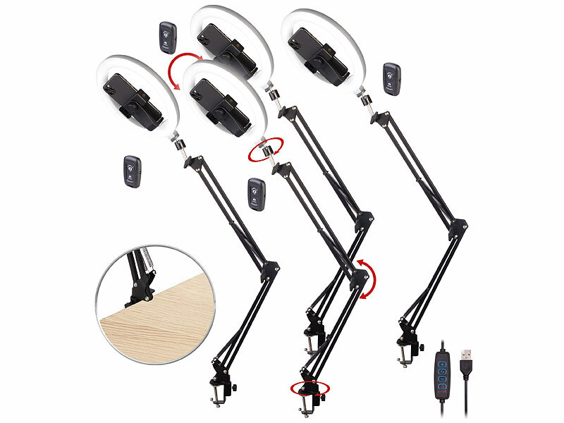 4 Ringlichter inklusive gefedertem Stativ, Smartphone-Halter, Funk-Fernauslöser und deutscher Anleitung