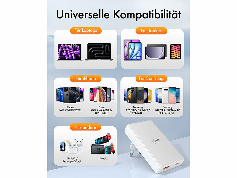 | Produktgruppe: Steckdosenleisten u. Ladegeräte, PD, GaN3, Schutzfunktionen, USB-C, USB-A für nur € 28,99 | Produktgruppe: Kfz-USB-Ladegeräte mit USB-C/A und ausziehbaren USB-C- und Lightning-kompatiblem Kabel von € 11,25 bis € 12,99 |