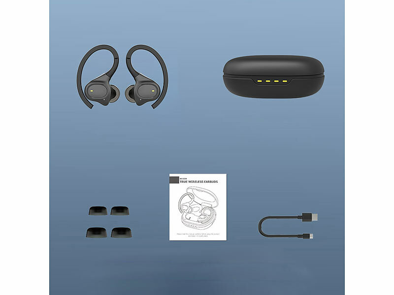 auvisio True Wireless In-Ear-Headset, Ohrbügel, Bluetooth 5, 15 Std. Spielzeit