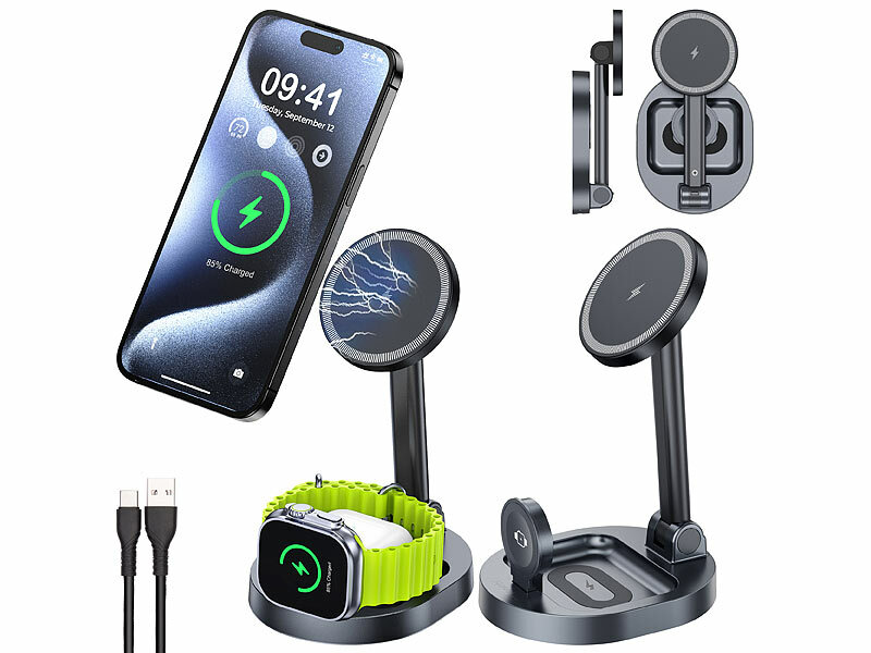 | Produktgruppe: Faltbare 3in1-MagSafe-Ladestationen für iPhones, Apple Watches & AirPods von € 15,99 bis € 54,99 | Produktgruppe: 3in1-Ladepad, Qi- & MagSafe-kompatibel und 20 W USB-PD-Netzteil für nur € 3,99 |