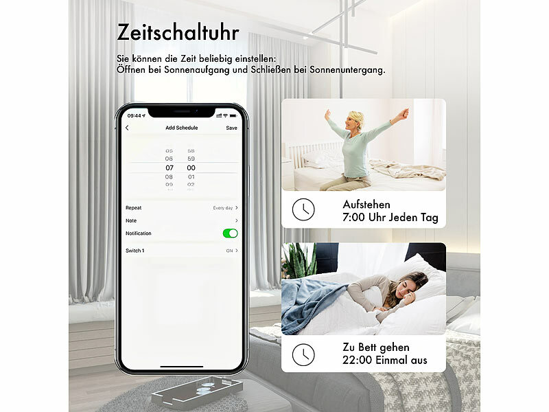 Smartes Öffnen und Schließen per App, Fernbedienung und Timer-Zeitsteuerung