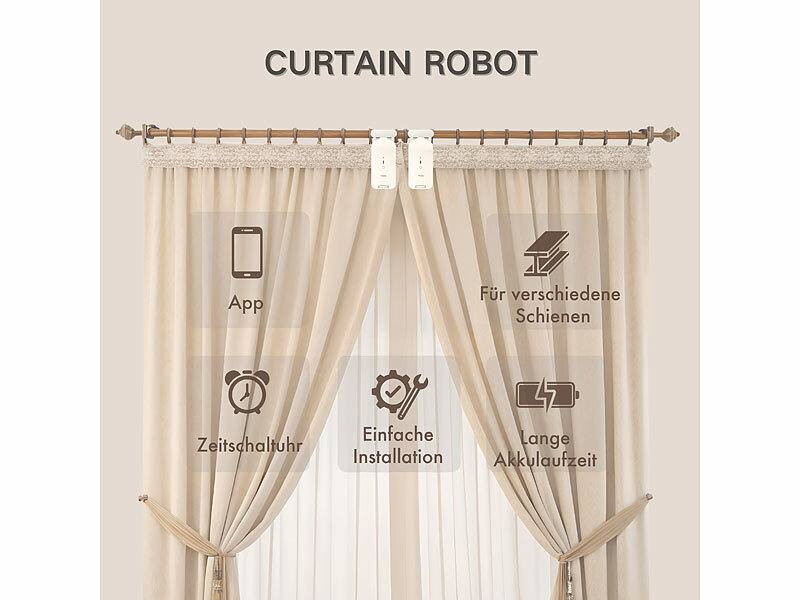 Unabhängig durch integrierten Akku: Dank leistungsstarkem Li-Ion-Akku funktioniert der Vorhangmotor ohne Steckdose in der Nähe. Einmal aufgeladen, arbeitet das Gerät zuverlässig über viele Monate hinweg - ideal für schwer zugängliche Fenster oder stilvolle, kabellose Raumgestaltung.