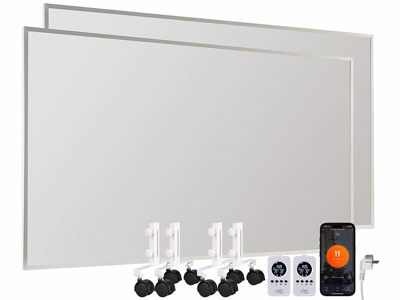 2 Infrarot-Heizungen EHZ-2065 inklusive 2 Standfuß-Sets, Montagematerial und deutscher Anleitung