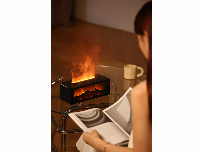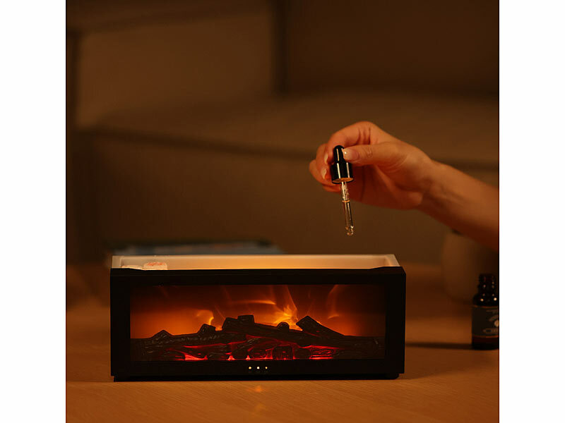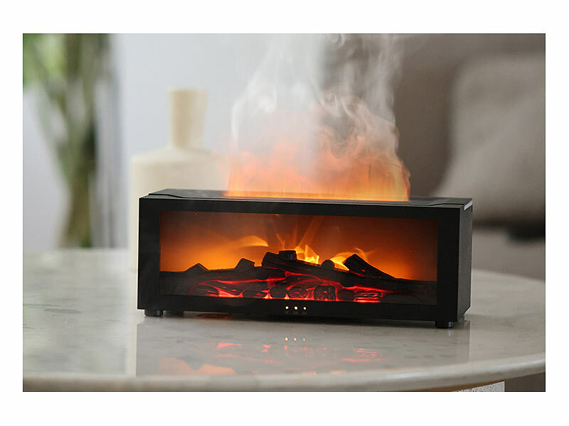 2in1: Aroma-Diffusor und LED-Kamin mit 7-farbiger RGB-Beleuchtung