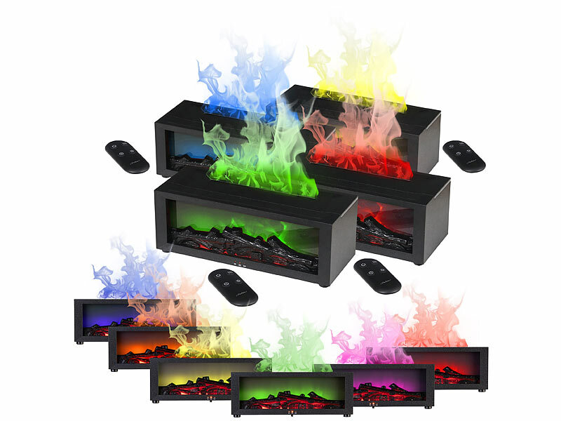 Kamin mit LED-Flammeneffekt und einstellbarer Beleuchtung: Farbwechsel-Kaminlicht oder feste Farbe