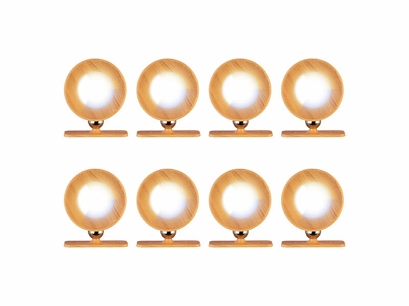 Lunartec 8er-Set CCT-LED-Wandlampen, Magnetfuß, dimmbar, Touchtasten, walnuss